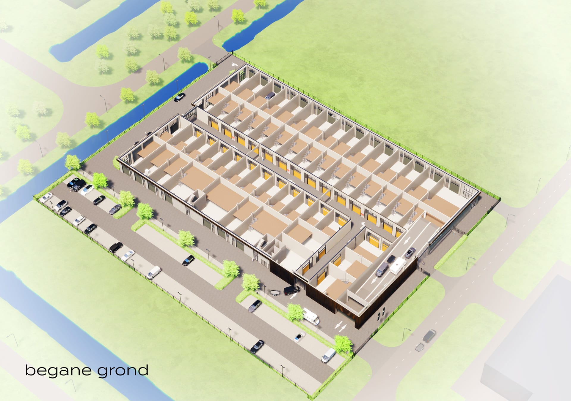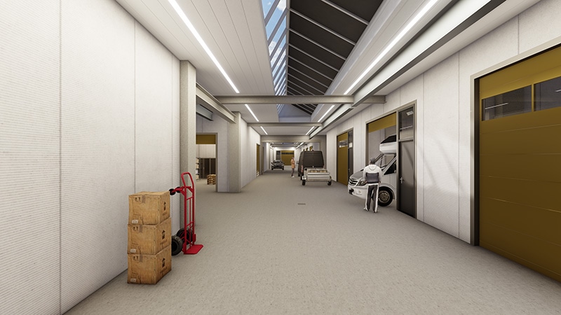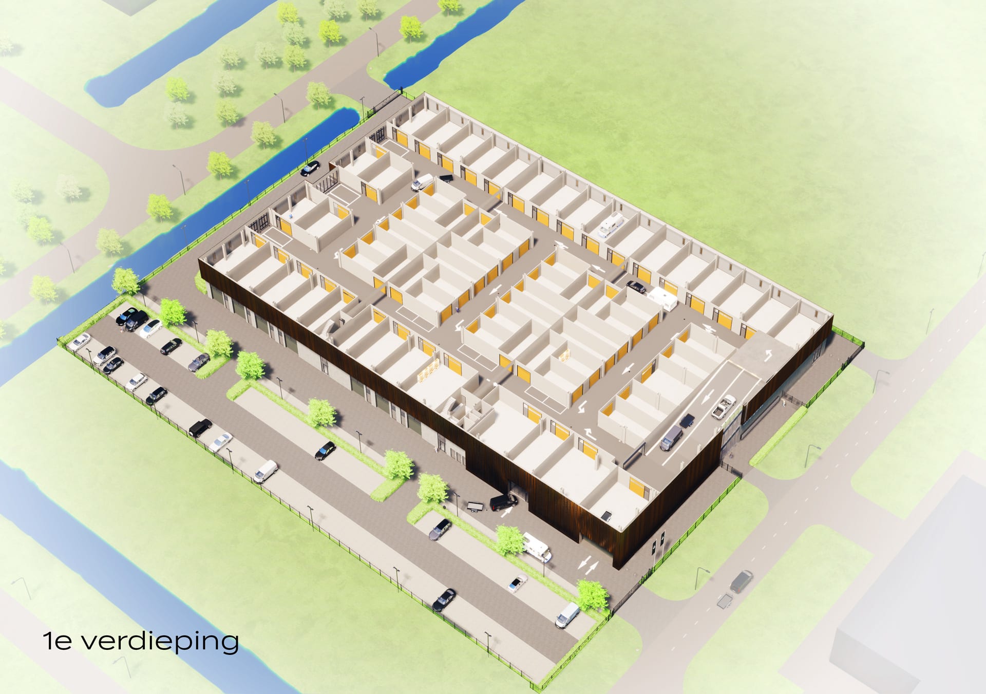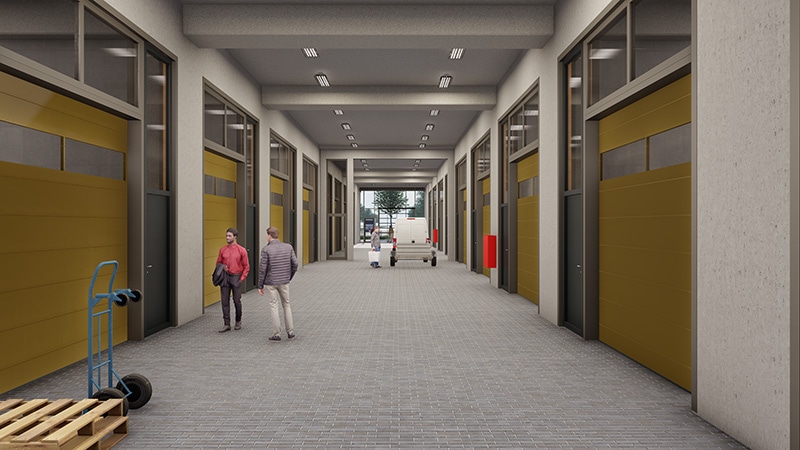 De bedrijfsunits bevinden zich op de begane grond, hebben een vrije hoogte van 6 meter en variëren van 92 m2 tot 296 m2 BVO.