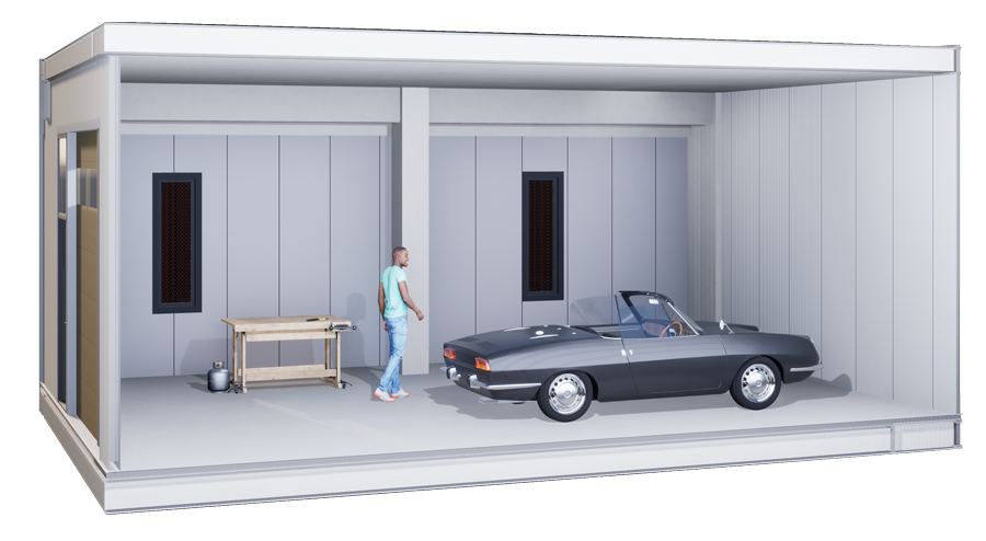 - Wanden van 10 cm sandwichpanelen met pir isolatie
