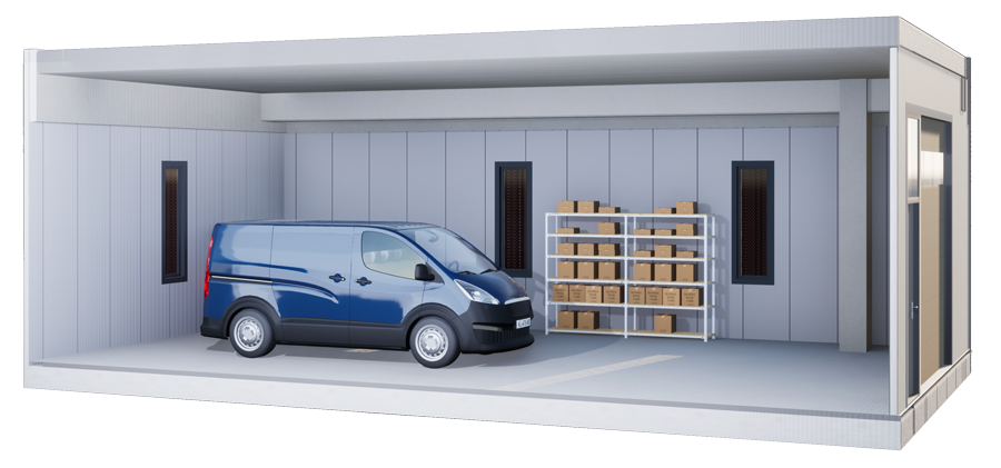 - Wanden van 10 cm sandwichpanelen met pir isolatie
